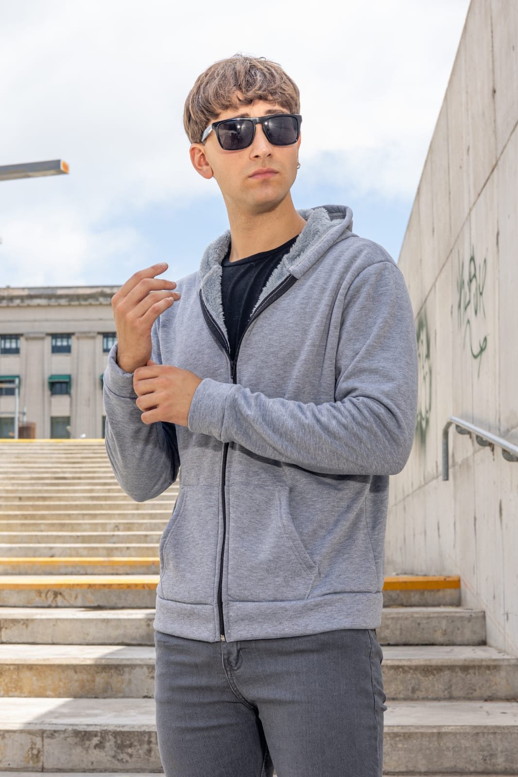 • Modelo con capucha y bolsillos delanteros